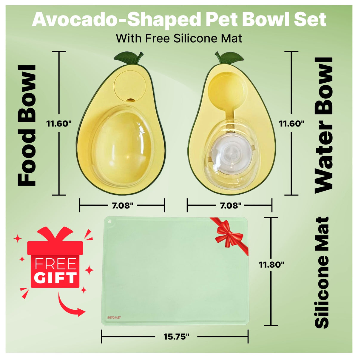 Cat Food and Water Bowl – Avocado Cat Bowl with Water Dispenser Pet Bowl& Small Dogs, Non-Spill, Anti-Choke, Eco-Friendly Dog Feeding Bowl Water Fountain 3-in-1 (Green&Yellow)